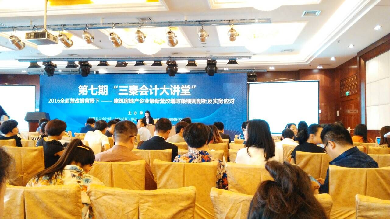 本次三秦会计大讲堂特别邀请具有20年税务教学经历及实务操作经验的上海财经大学硕士,高级讲师、苏州大学及宁波税校客座教授、税收征管教研室主任唐永琪老师,就《2016全面营改增背景下——建筑房地产企业最新营改增政策细则剖析及实务应对》这个当前全国上下,特别是建筑、房地产企业普遍关注的热点、重点、难点问题进行主题演讲。活动由陕西省总会计师(财务总监)协会赵晋德副会长主持,李振林副会长致辞。上海高顿财税学院市场经理钱娟娟介绍了教学业务推广情况。陕西会计学会白君贤会长、陕西省总会计师(财务总监)协会李振林、赵晋德副会长、陕西省财政厅会计处闫开宁副处长、西安市会计学会李福玲会长以及中省各企业集团、建筑施工、房地产企业总会计师、财务总监和财务会计人员约380余人出席。我院财务处负责人及相关人员参加了学习。